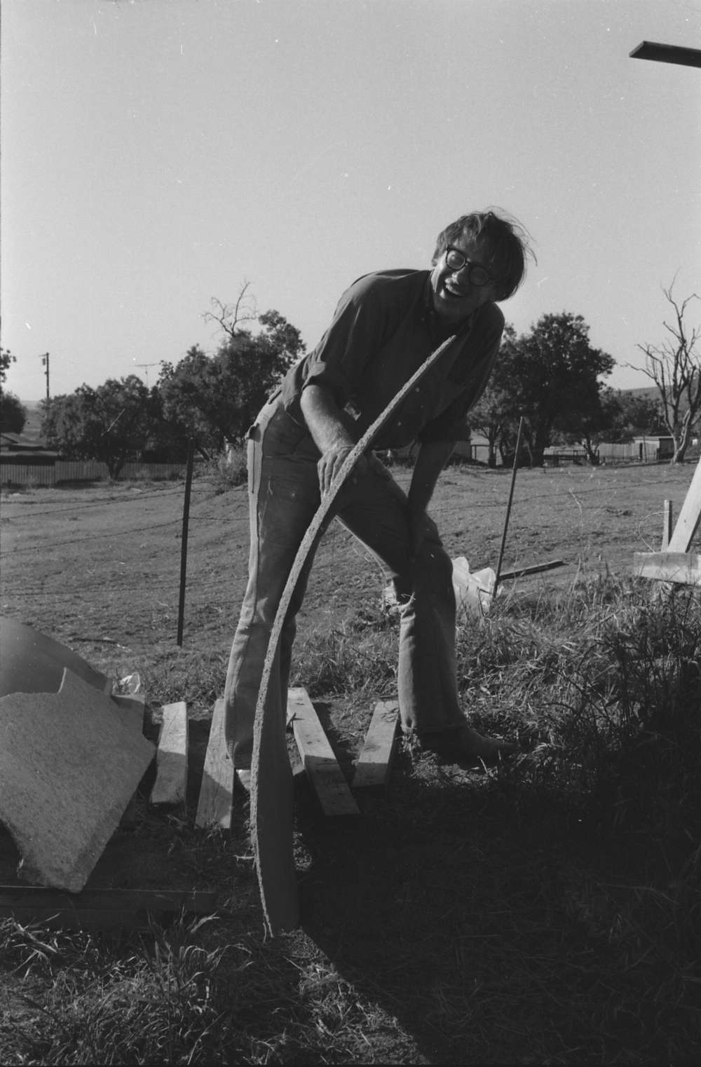 Martinez Tile Glazing Workshop: The first experimental all-gunite concrete building, with vaulted ceiling and pitched roof – Photographs of 1st step of construction process
