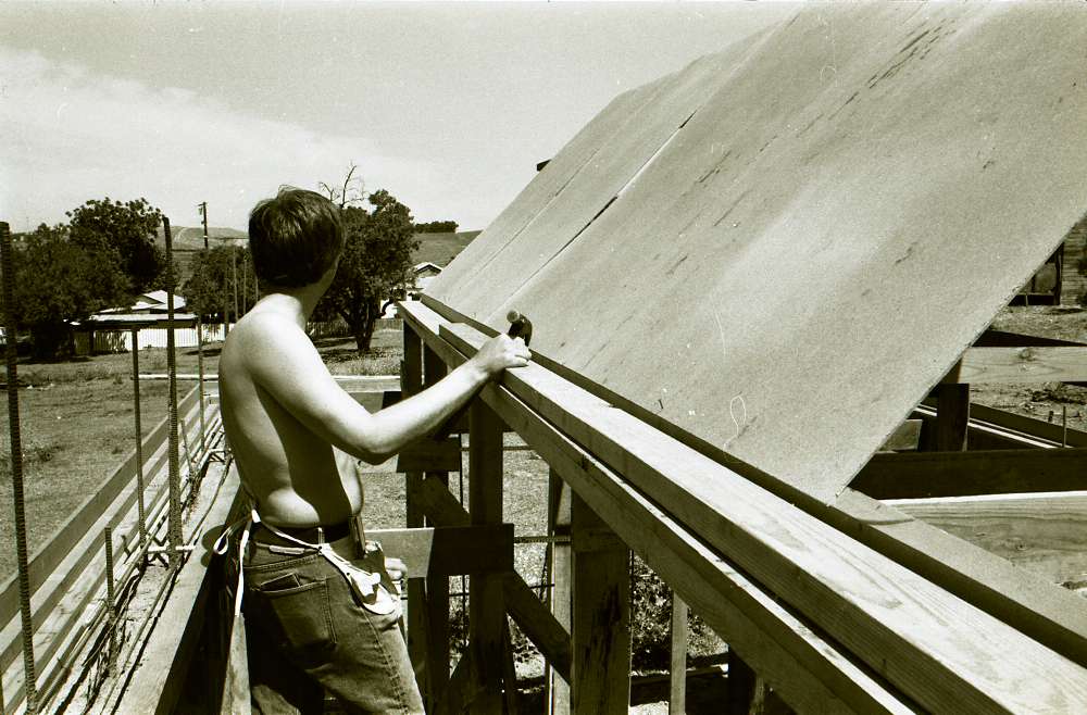 Martinez Tile Glazing Workshop: The first experimental all-gunite concrete building, with vaulted ceiling and pitched roof – Photographs of 2nd step of construction process
