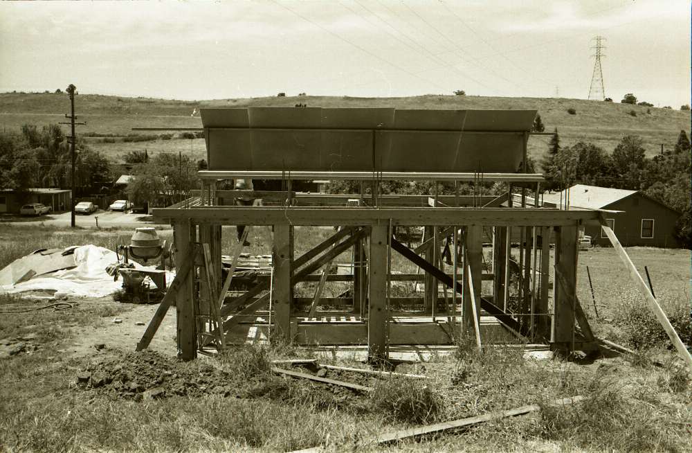 Martinez Tile Glazing Workshop: The first experimental all-gunite concrete building, with vaulted ceiling and pitched roof – Photographs of 2nd step of construction process