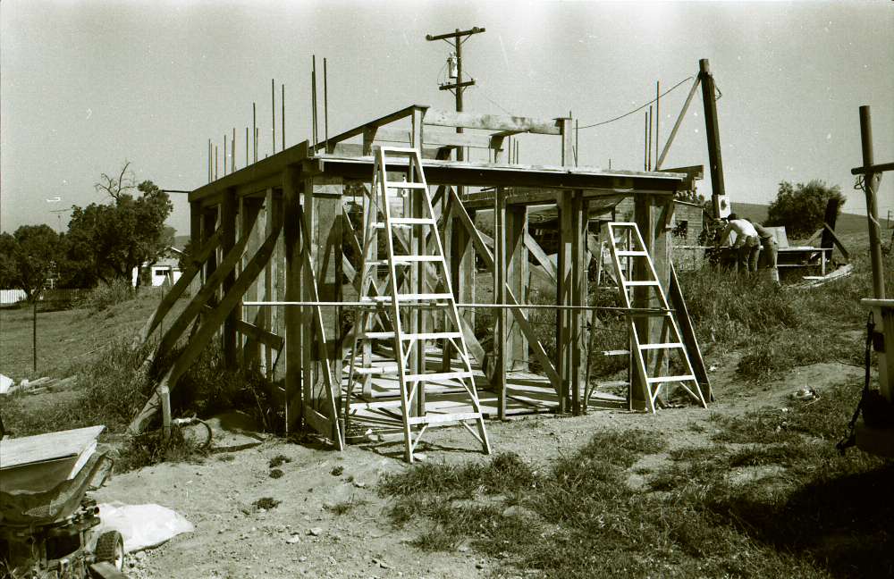 Martinez Tile Glazing Workshop: The first experimental all-gunite concrete building, with vaulted ceiling and pitched roof – Photographs of 2nd step of construction process