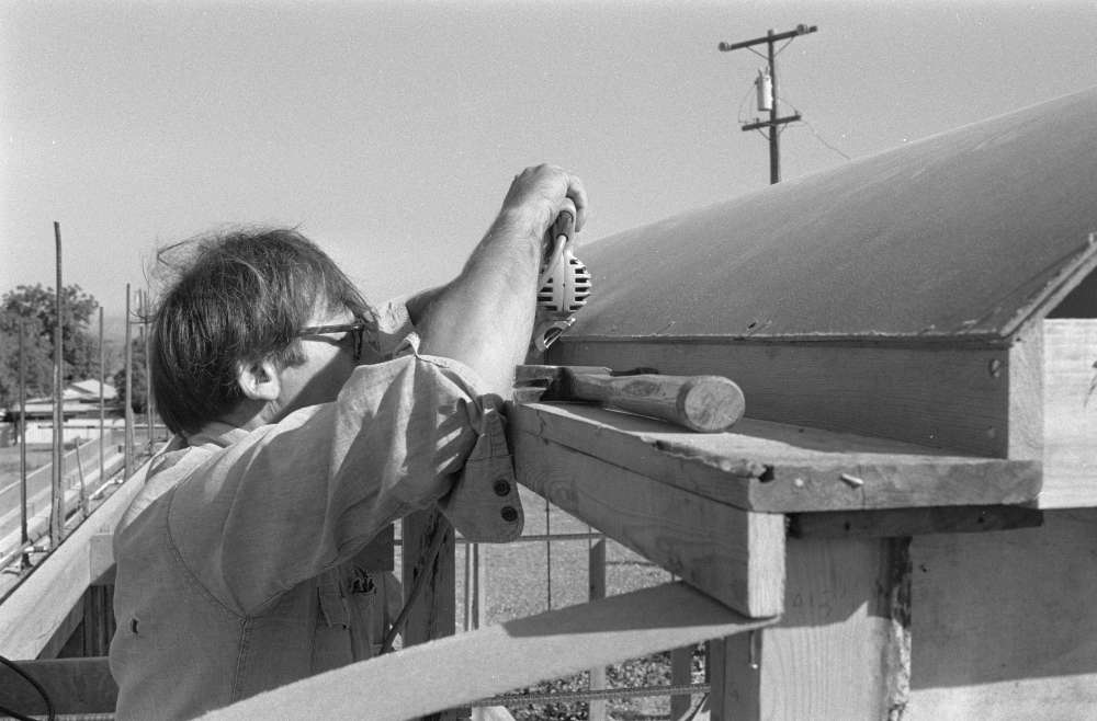 Martinez Tile Glazing Workshop: The first experimental all-gunite concrete building, with vaulted ceiling and pitched roof – Photographs of 2nd step of construction process