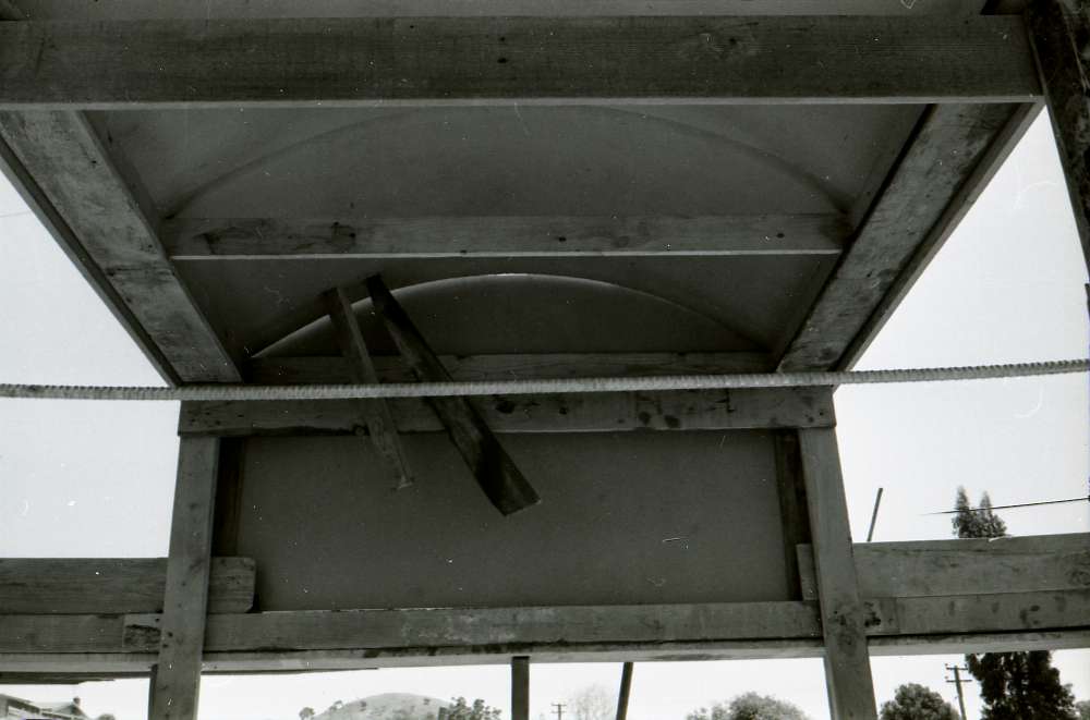 Martinez Tile Glazing Workshop: The first experimental all-gunite concrete building, with vaulted ceiling and pitched roof – Photographs of 2nd step of construction process