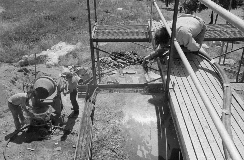 Martinez Tile Glazing Workshop: The first experimental all-gunite concrete building, with vaulted ceiling and pitched roof – Photographs of 3rd step construction stage