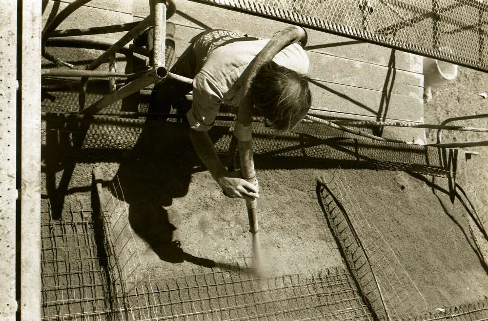 11) Alexander working on the last layer of gunite in the side section