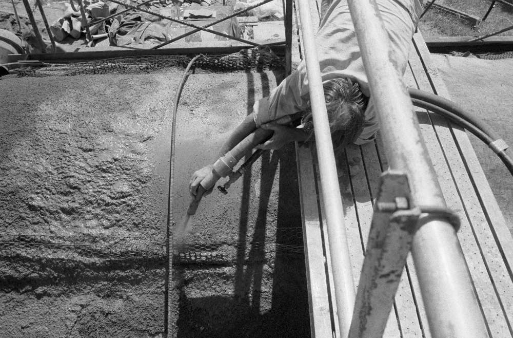 Martinez Tile Glazing Workshop: The first experimental all-gunite concrete building, with vaulted ceiling and pitched roof – Photographs of 3rd step construction stage