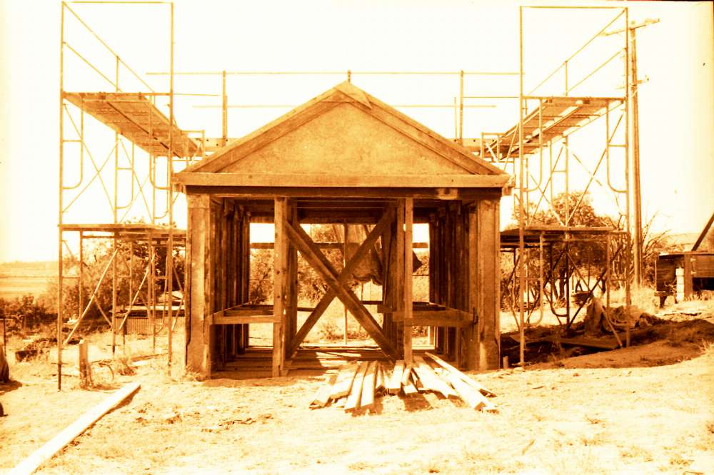 Martinez Tile Glazing Workshop: The first experimental all-gunite concrete building, with vaulted ceiling and pitched roof – Photographs of 4th step of construction process