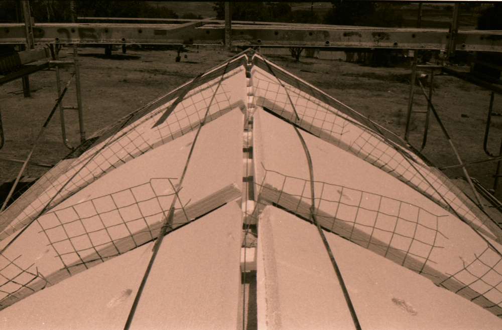 Martinez Tile Glazing Workshop: The first experimental all-gunite concrete building, with vaulted ceiling and pitched roof – Photographs of 5th step of construction process