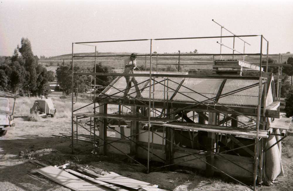 Martinez Tile Glazing Workshop: The first experimental all-gunite concrete building, with vaulted ceiling and pitched roof – Photographs of 5th step of construction process