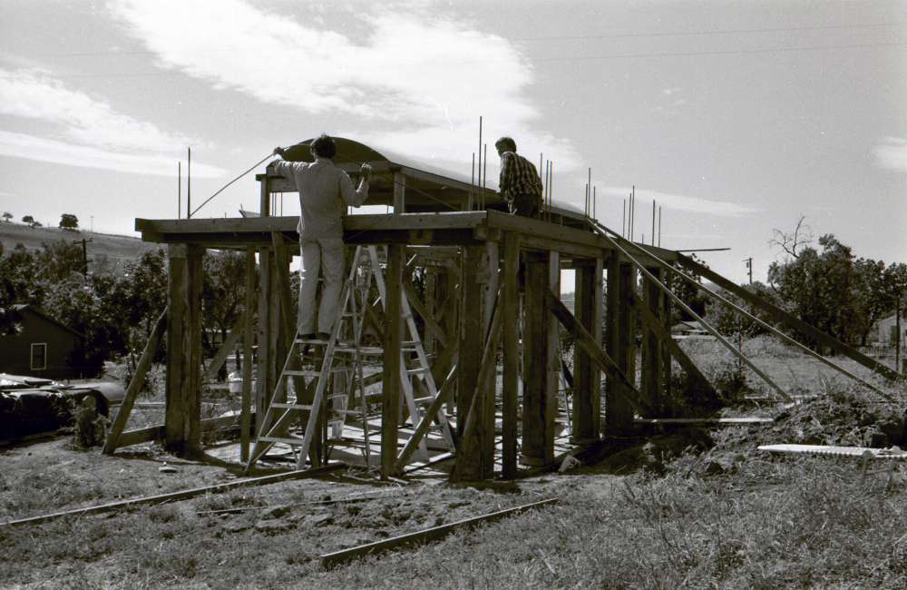 Martinez Tile Glazing Workshop: The first experimental all-gunite concrete building, with vaulted ceiling and pitched roof – Photographs