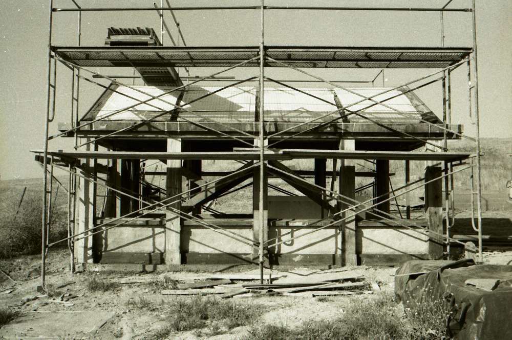 5) The building with the thermal insulation sheets placed over the vaulted ceiling gunite & forming the pitched roof formwork