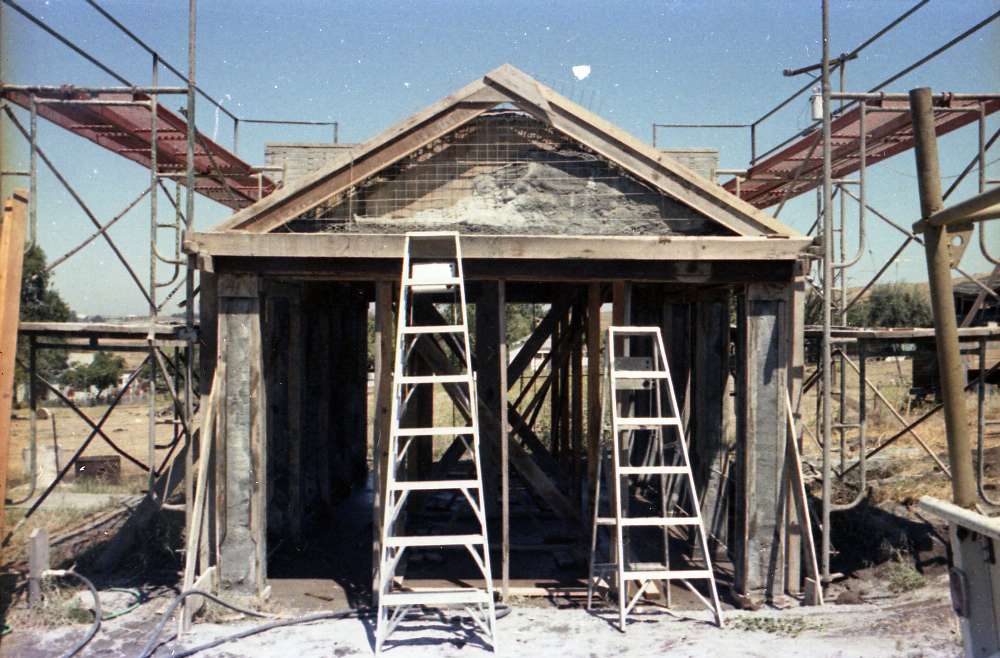 Martinez Tile Glazing Workshop: The first experimental all-gunite concrete building, with vaulted ceiling and pitched roof – Photographs