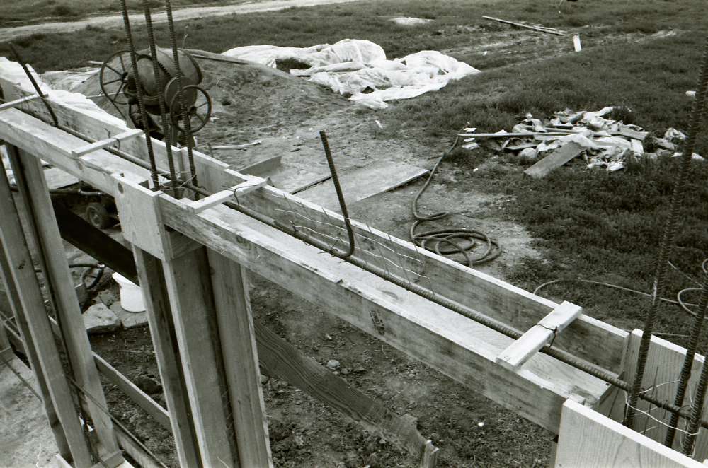 Martinez Tile Glazing Workshop: The first experimental all-gunite concrete building; construction of columns and beams – Photographs of 1st step