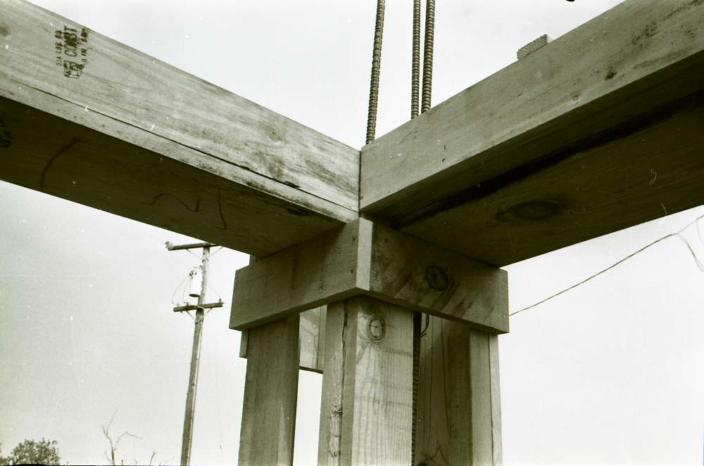 Martinez Tile Glazing Workshop: The first experimental all-gunite concrete building; construction of columns and beams – Photographs of 1st step