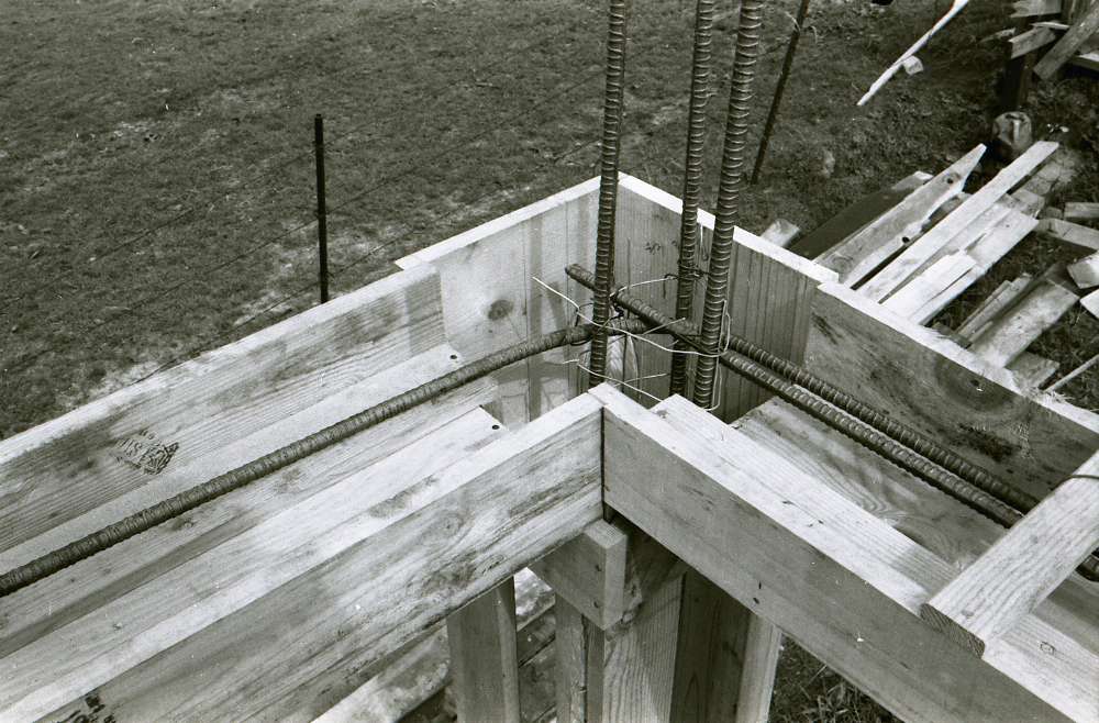 Martinez Tile Glazing Workshop: The first experimental all-gunite concrete building; construction of columns and beams – Photographs of 1st step