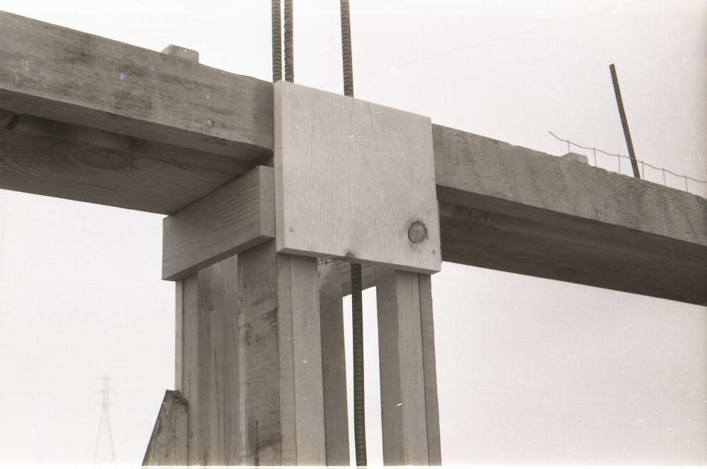 Martinez Tile Glazing Workshop: The first experimental all-gunite concrete building; construction of columns and beams – Photographs of 1st step