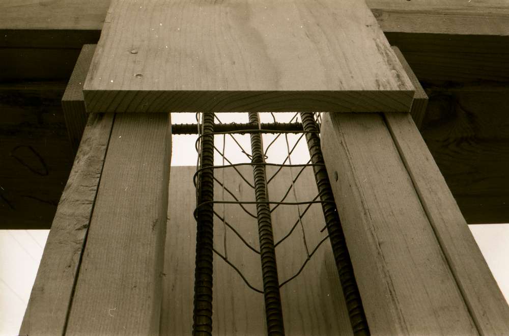 Martinez Tile Glazing Workshop: The first experimental all-gunite concrete building; construction of columns and beams – Photographs of 1st step