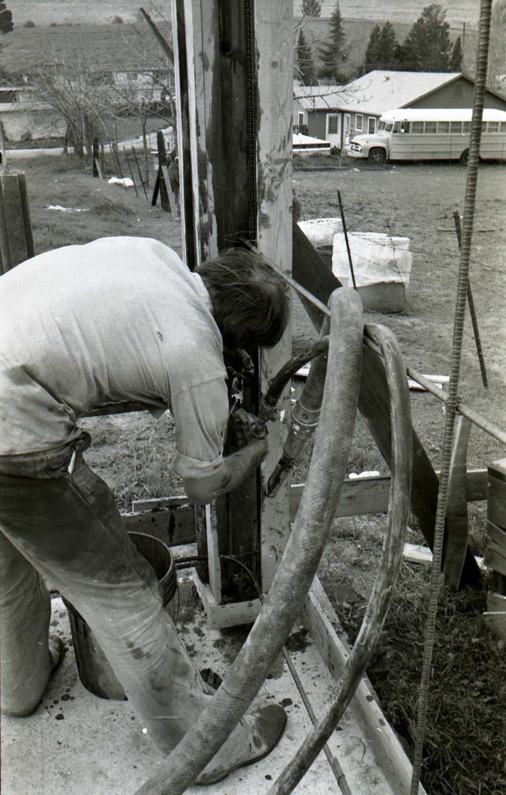 3) Shooting gunite in the column starting form the bottom, using the open sides of the formwork