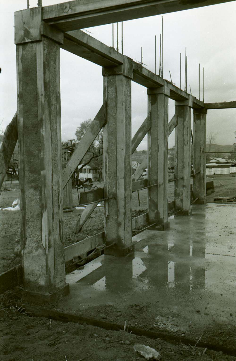 Martinez Tile Glazing Workshop: The first experimental all-gunite concrete building; construction of columns and beams – Photographs of 2nd step