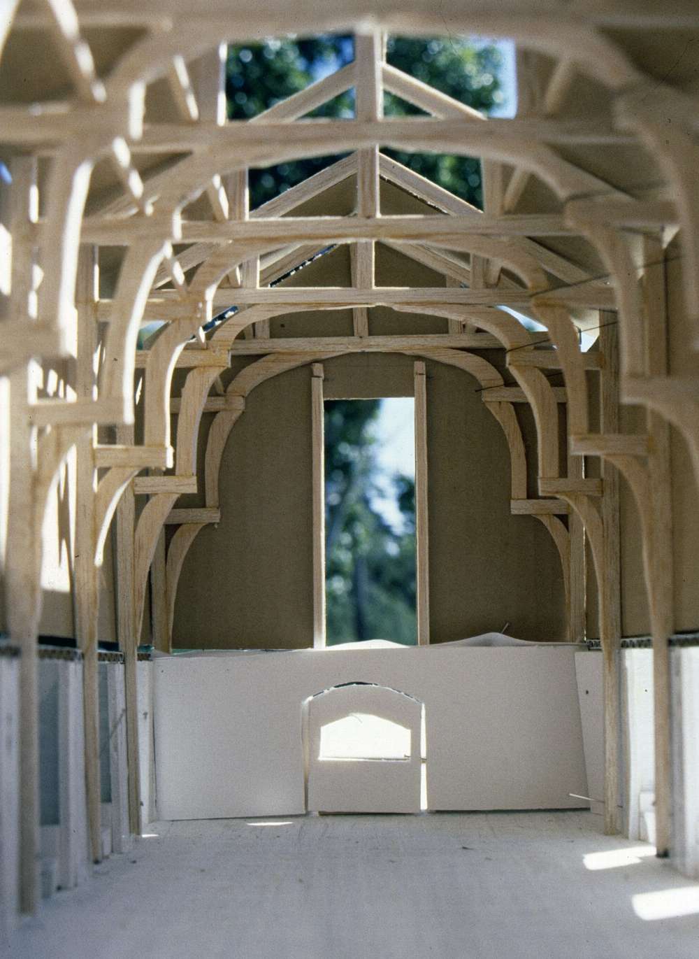 The Campus of Eishin- High School: Central Hall heavy timber truss with curved members – Photographs of model 2nd view