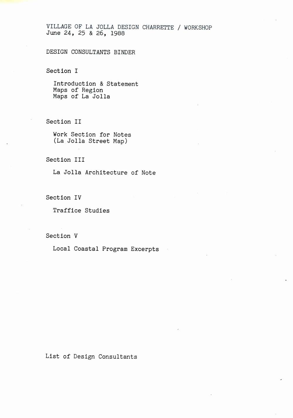 La Jolla Village and Waterfront – Workshop and Design Charrette: Design Consultants Binder
