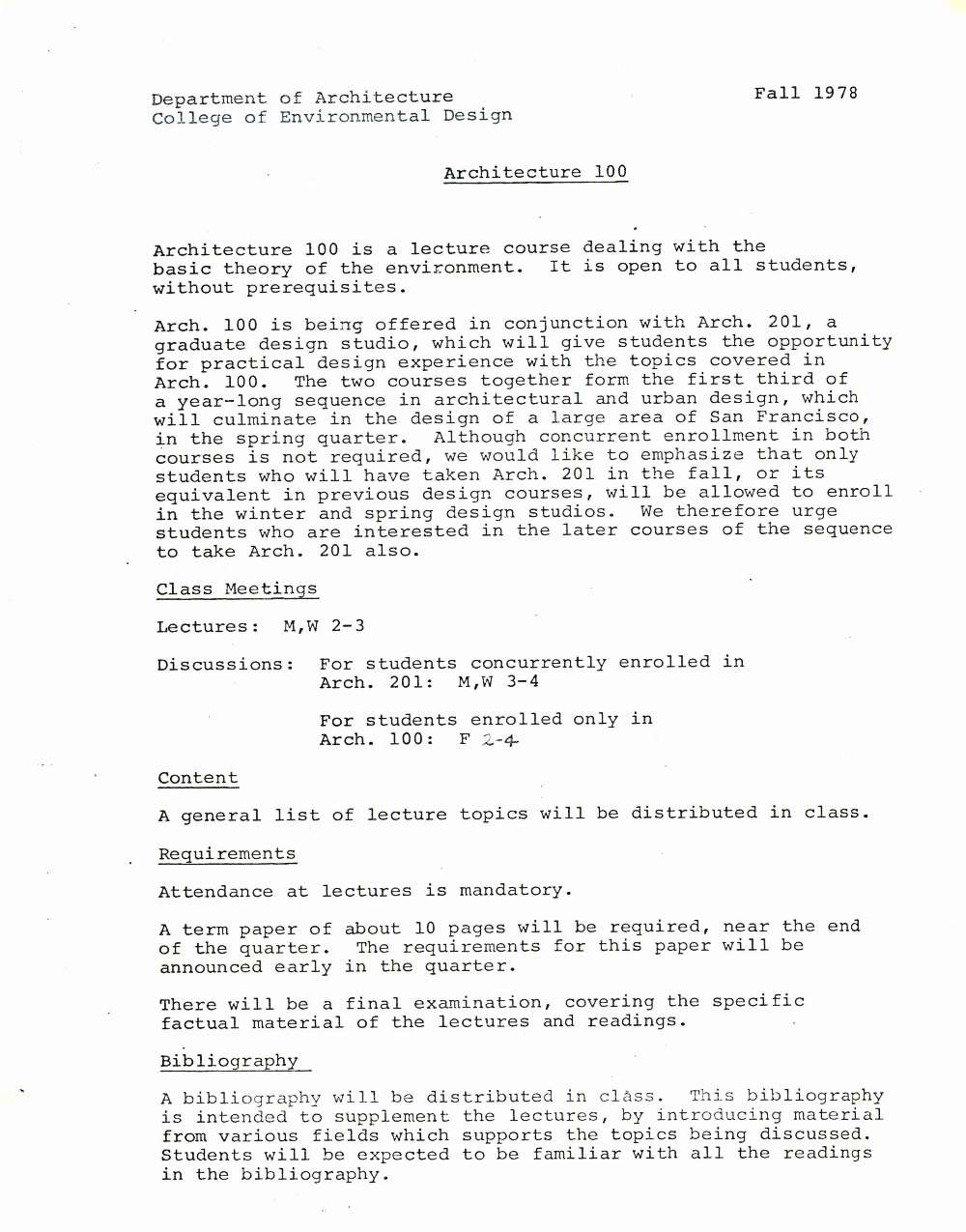 Arch. 100, Fall 1978 – The Timeless Way of Building: Lecture course